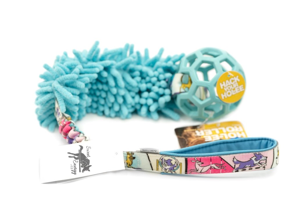 Undoubtedly one of the most popular dog toys — no furry friend can resist the combination of a mop and a perforated ball. Now featuring our original Agility Comics design.