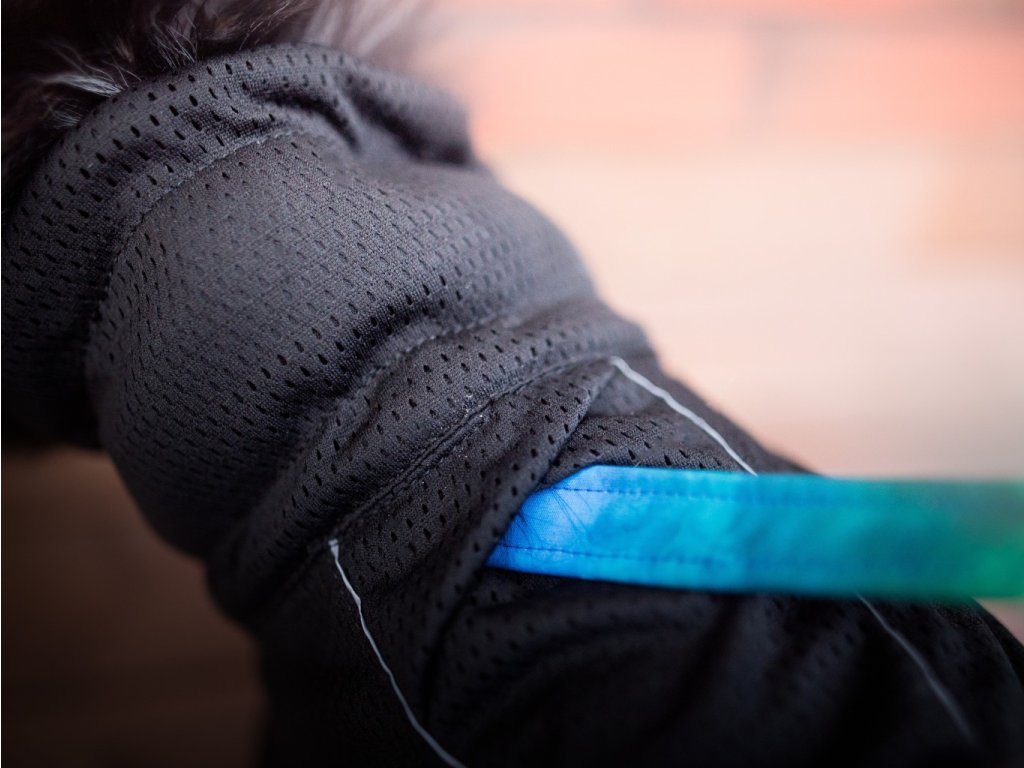 Síťovaný obleček pro psy BAY je navržen tak, aby obepínal tělo psa, ale také aby umožňoval optimální volnost pohybu. Toho je dosaženo přiléhavým střihem kolem stehen a hrudníku. Vzhledem k tomu, že tato verze je určena pro psy s nízko nasazeným ocasem, má zavinovací střih vpředu i vzadu, což ponechává prostor pro pohyb nohou a ocasu.