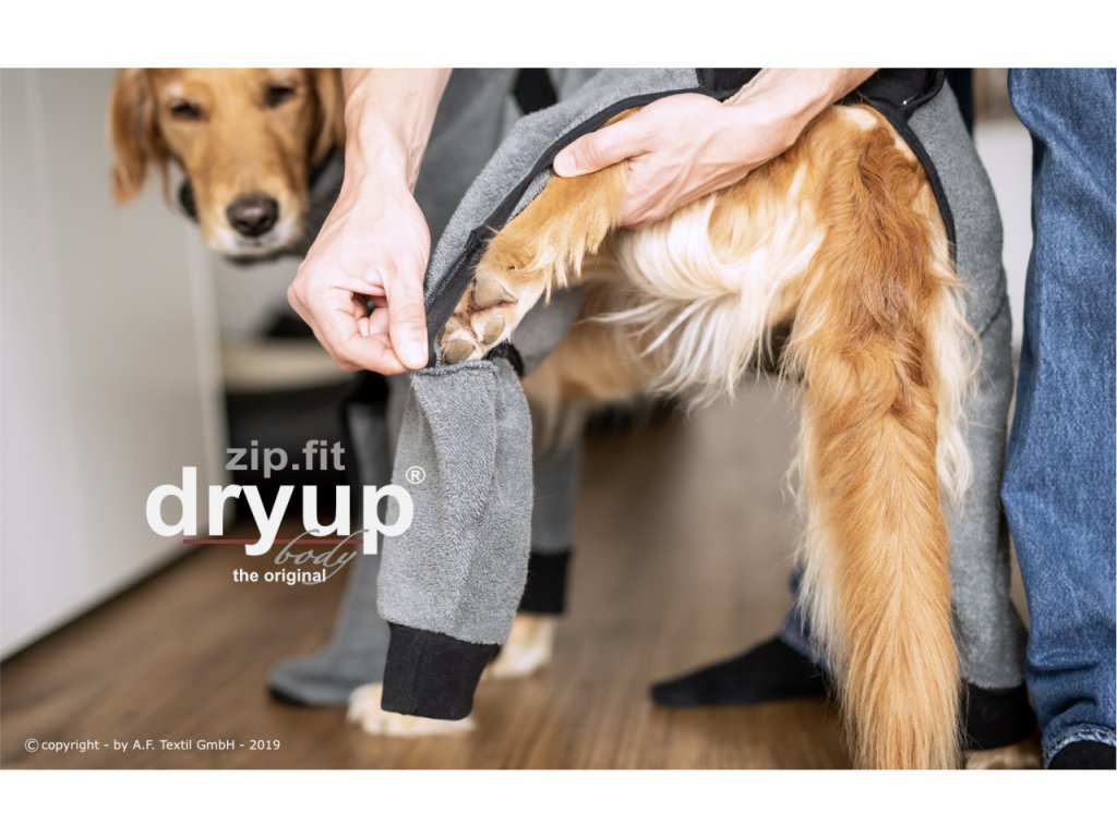 S důmyslným DRYUP BODY ZIP. FIT, psí srst lze rychle a snadno vysušit po procházce v dešti, po sprše nebo po plavání - bez tření!